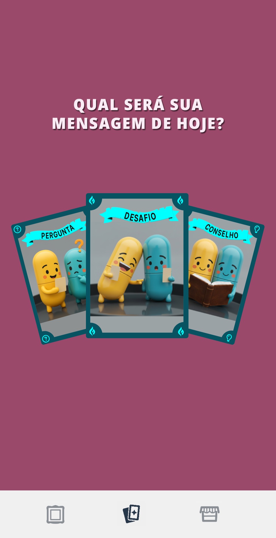 Você vai receber 3 cartas por dia. Um desafio, uma pergunta e um conselho. E vocês podem se organizar para jogar quando quiser, pois as cartas só são liberadas quando vocês lerem.